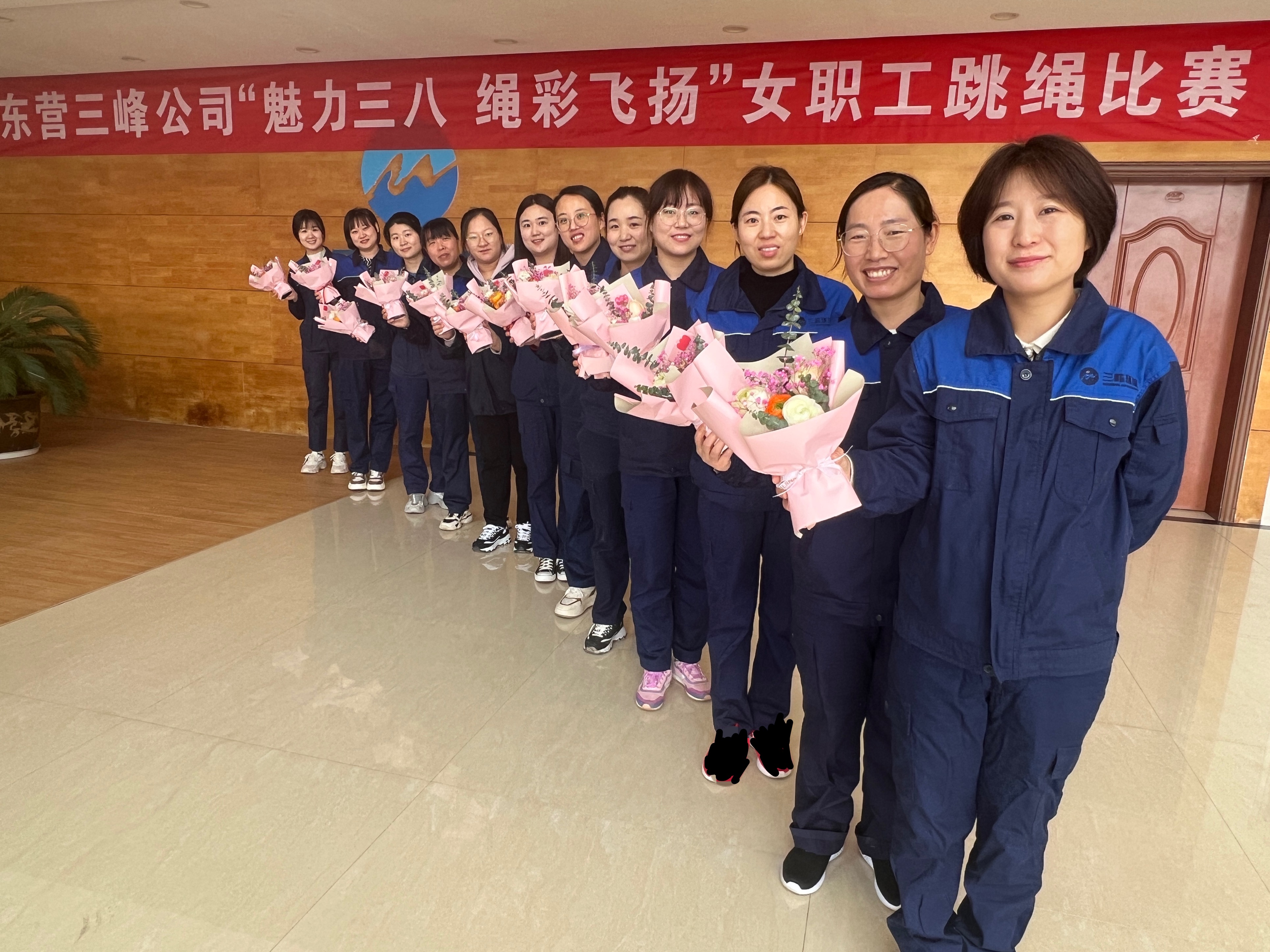 山东东营公司组织开展“魅力三八 绳彩飞扬”女职工跳绳比赛,并为当班职工献花,送上节日的美好祝福。